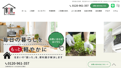 広島県東広島市八本松町飯田に所在地を構え、周辺環境を熟知した立場で、スムーズな対応を常に心がけながら日々の活動を継続しているのが、おうちの御用聞き 家工房 八本松店です。皆様のご自宅まで迅速に駆けつけることが可能で、営業時間は9:00から18:00まで、日曜日を定休日として対応しています。緊急で対応が必要な場合には最短即日で伺えるスピード対応も実現しており、地域の身近な相談先として皆様の笑顔が見えるような丁寧な仕事を行っています。