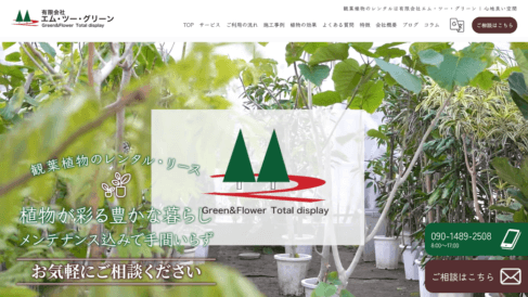 「緑ある空間で心地良い毎日を届けたい」という思いのもと、有限会社エム・ツー・グリーンは植物を活用した空間サポートを行っています。和やかで温かみのある雰囲気の中で打ち合わせを進めることを大切にしており、個人・法人を問わず「話だけ聞きたい」「見積もりだけ取りたい」といった気軽な相談から対応しています。