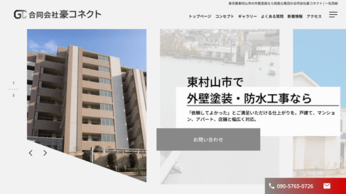 東京都東村山市青葉町に拠点を構える合同会社豪コネクトは、地元・東村山市を中心に関東全域で外壁塗装・防水工事を手がけています。空堀橋バス停から徒歩約1分という好アクセスの立地で、地域のお客様が気軽に立ち寄れる環境を整えながら、広域の施工ニーズにも柔軟に対応しています。