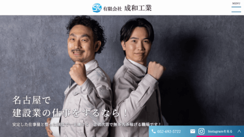 有限会社成和工業は残業が少なめで仕事とプライベートのメリハリをつけやすく、建設業の中でもホワイトな労働環境として整備されています。髪色やピアスなど身だしなみへの縛りが少なく、個性を大切にしながら自分らしいスタイルで現場に向き合える自由な職場文化が根付いている点も大きな魅力です。
