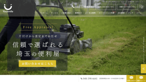 埼玉県熊谷市を拠点に、県内はもとより群馬県まで出張対応を行う買取専門店 ユースマイルは、遺品整理・不用品回収・不用品処分・残置物撤去・粗大ごみ回収・家電回収・ゴミ屋敷清掃など、暮らしにまつわる多岐にわたる課題に対応できる体制を整えています。 草むしりや電球交換・エアコン掃除といった細かな日常のお困りごとにも柔軟に応じており、生活のあらゆる場面で頼りになる存在として地域の皆様に利用されています。