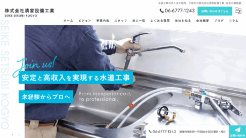 株式会社清家設備工業|未経験からプロへ、大阪の水道工事で社会を支える